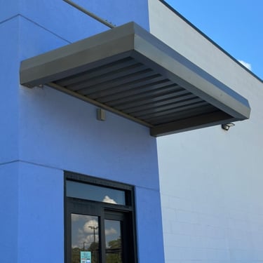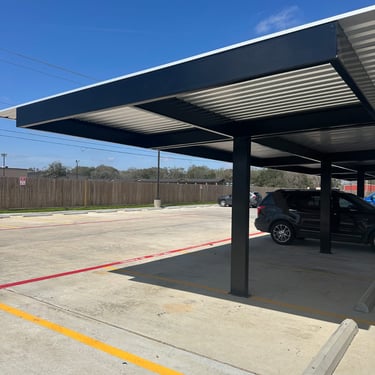 Steel canopy strictures providing durable coverage for homes and businesses.